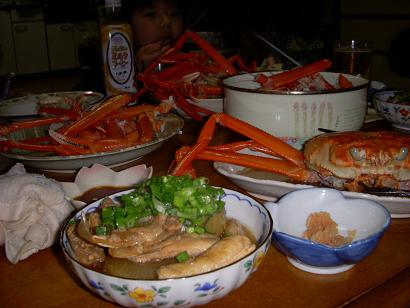 かけパパの隣で…蟹を喰ってる人…