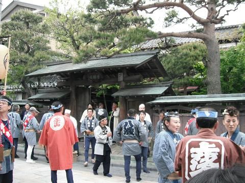 様々な店の前で…ご祝儀や振る舞い酒をいただきながら
