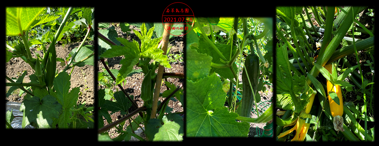 オクラを少し収穫!キウリとズッキーニは今日かな?