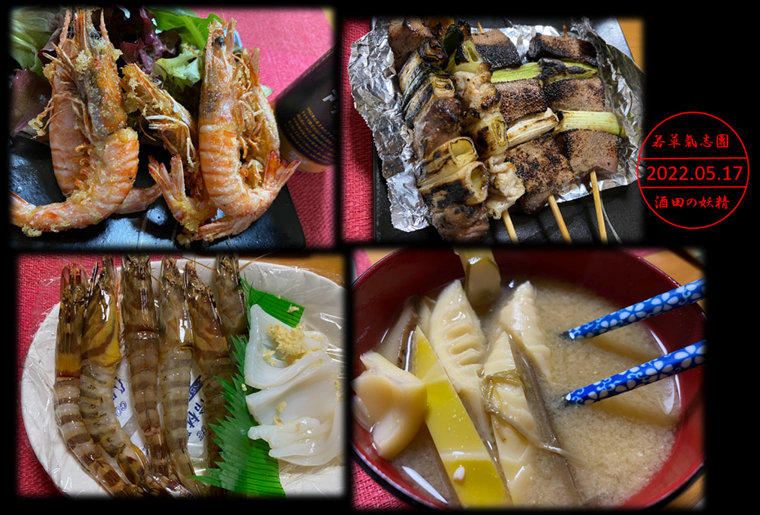 夕食はいただいた車エビを唐揚げと刺身にした!