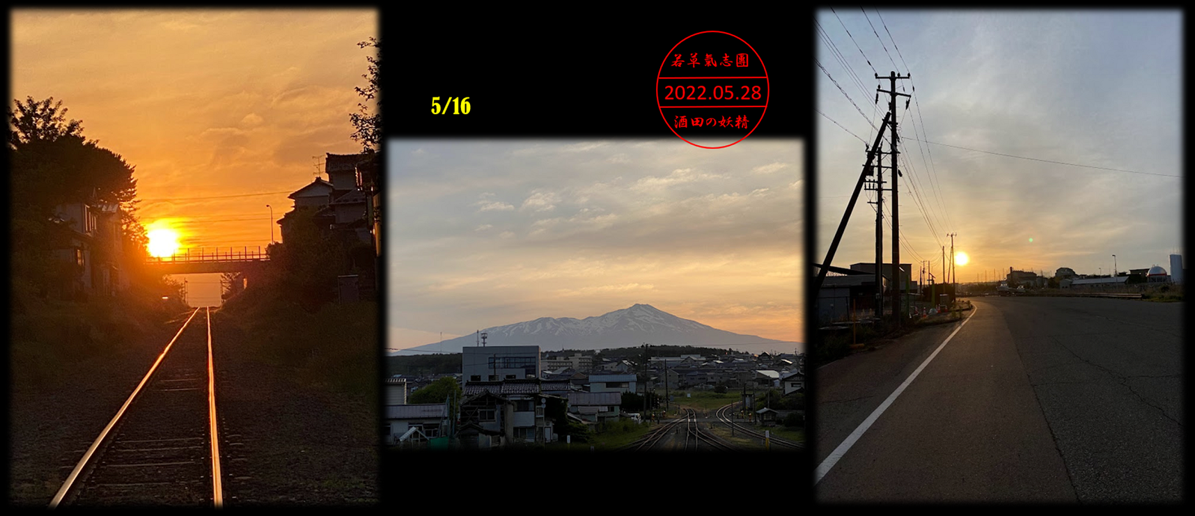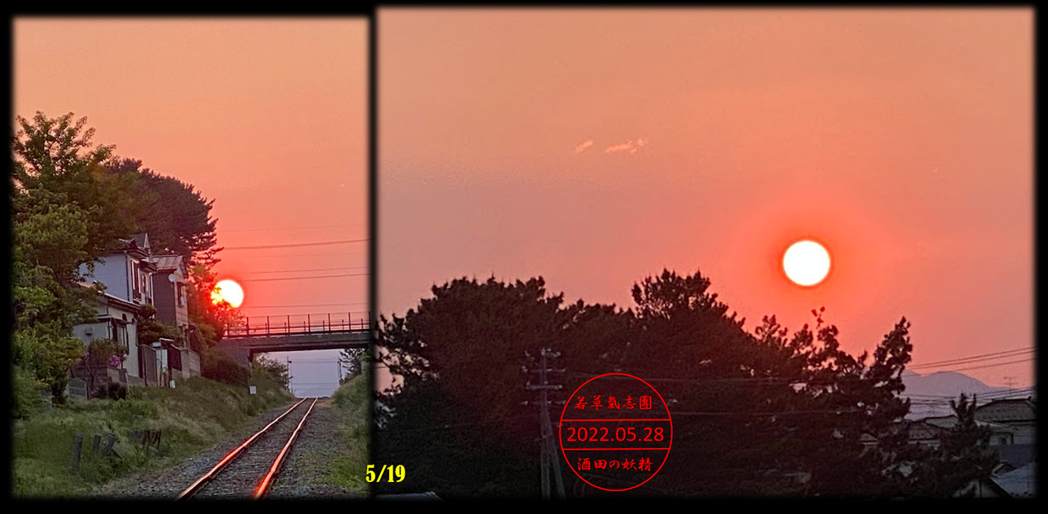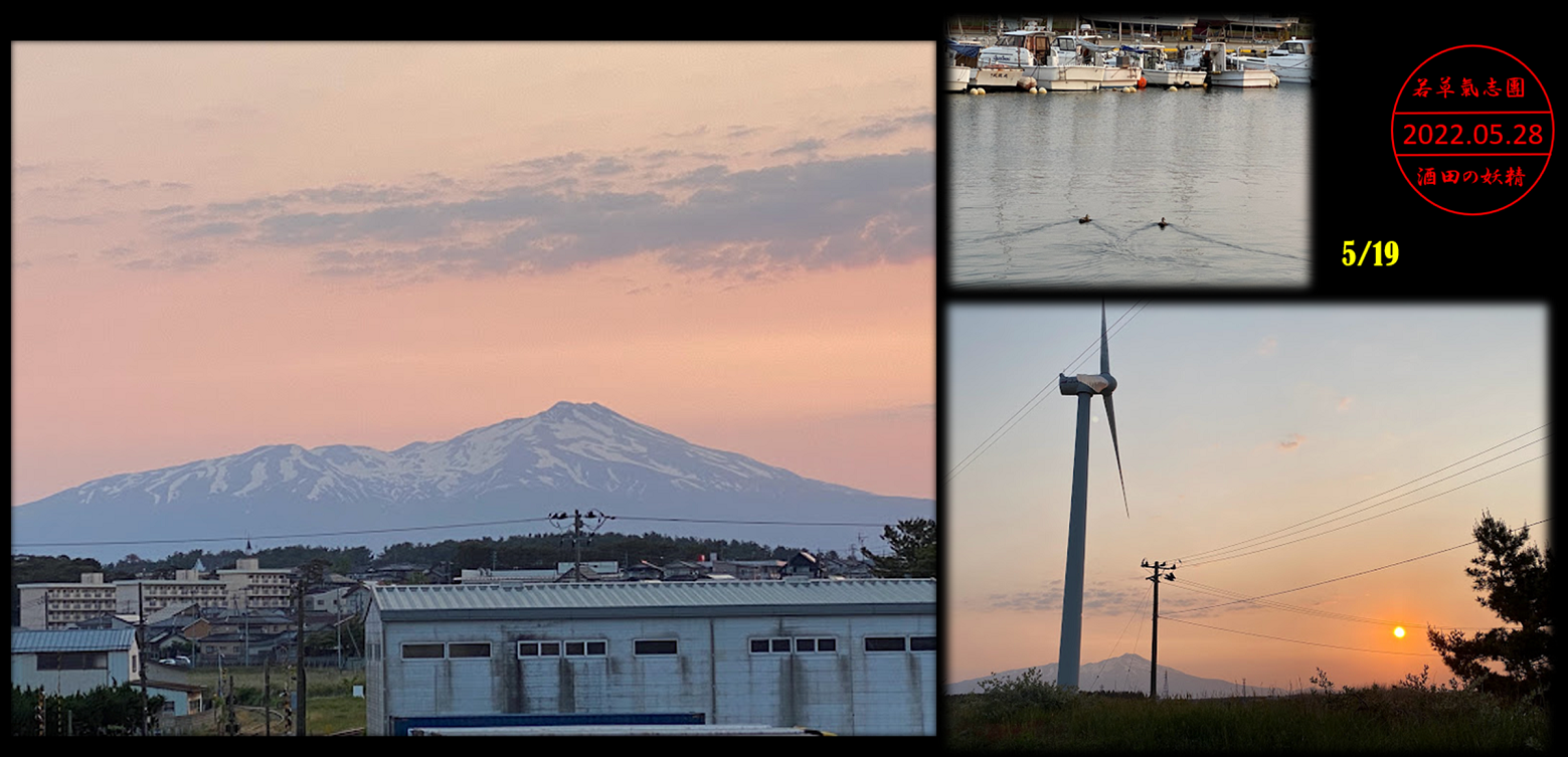 5/19…でっかい朝陽がお出迎えでした!鳥海山もご機嫌!