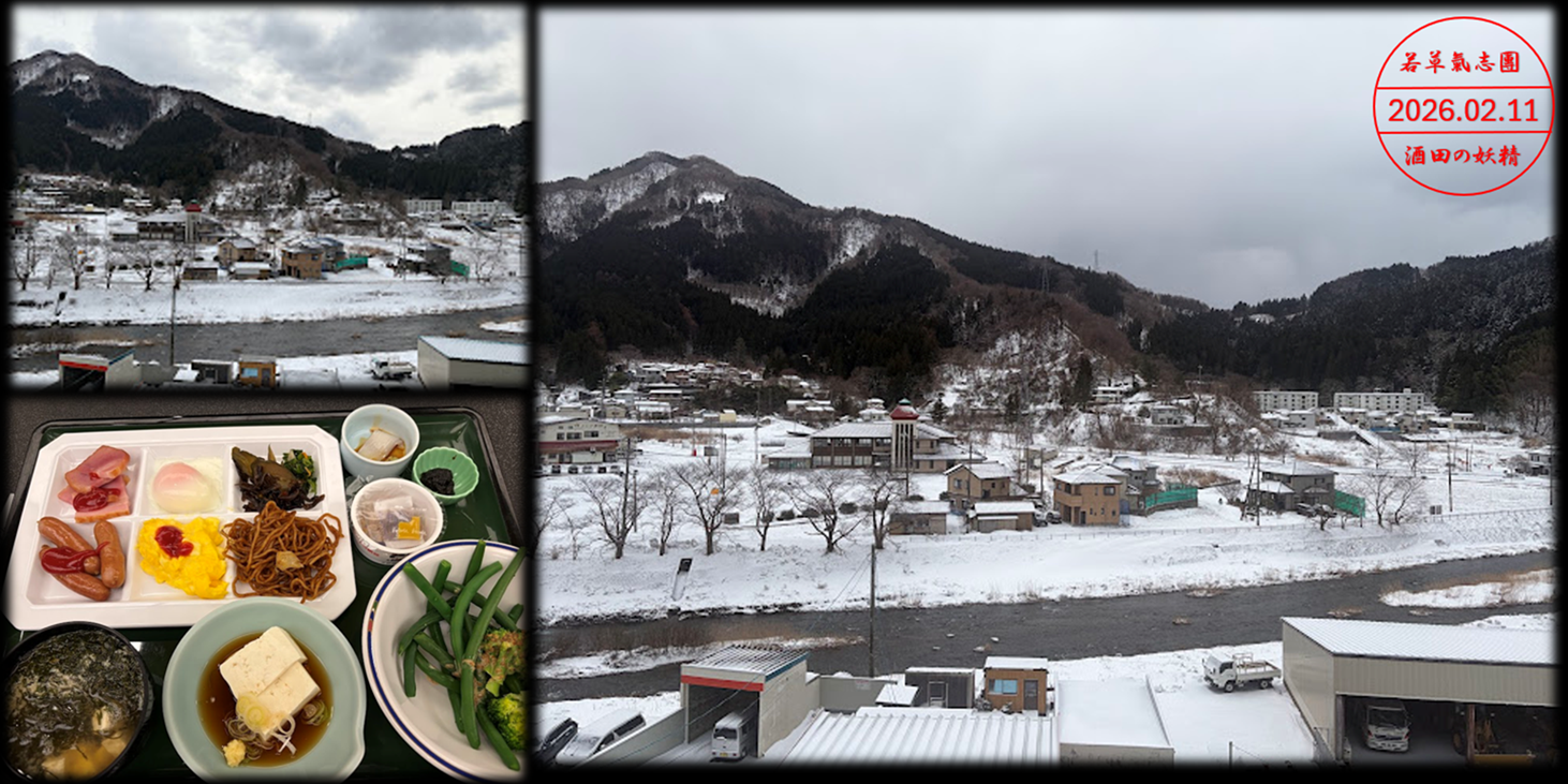 チェックインの後部屋から撮った景色と比較して翌朝は少しだけ雪が積もっていた!